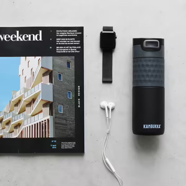 The Etna travel mug's lid is compatible with any Kambukka bottle or mug, offering versatility and interchangeability.